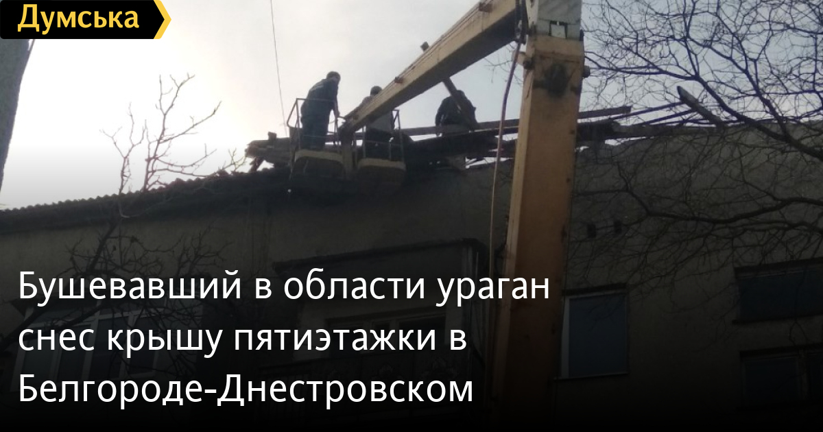 Сильный ветер, который бушевал в Одесской области сегодня днем, повредил крышу пятиэтажного жилого дома, расположенного по улице Маршала Бирюзова в Белгороде-Днестровском.
