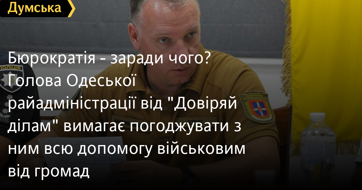 Голова Одеської районної військової адміністрації Юрій Крук з партії «Довіряй ділам» вимагає узгоджувати з ними усі витрати громад на військо.