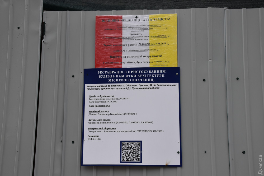 Заказчиком и подрядчиком выступила компания «Пента+» с уставным капиталом 15 млн гривен, созданная менее полугода назад. Ее учредителями являются экс-депутаты Одесского горсовета V созыва от «Батькивщины» — Юрий Заграничный (был членом постоянной комиссии по строительству и архитектуре) и Вадим Яременко (член земельной комиссии).