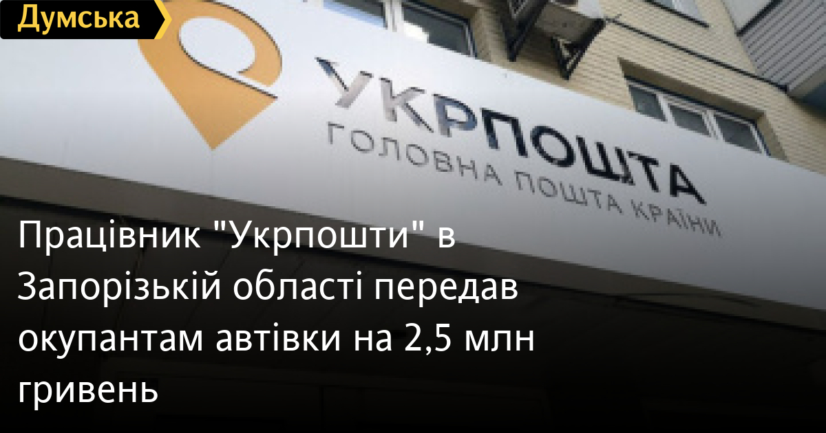 Колишнього працівника АТ «Укрпошта», який добровільно передав матеріальні ресурси підприємства окупаційній владі рф, судитимуть за співпрацю з ворогом.