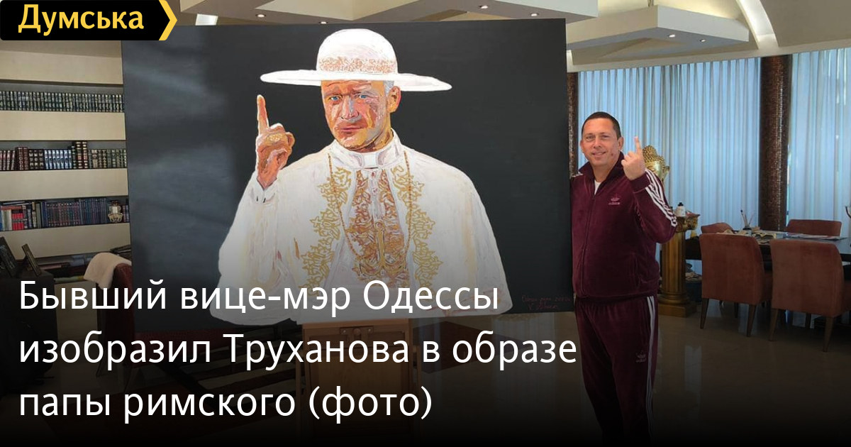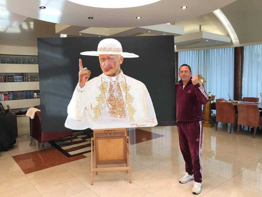 Начинающий живописец решил начать с портретов и запечатлел мэра Одессы Геннадия Труханова в образе героя известного сериала «Молодой Папа».