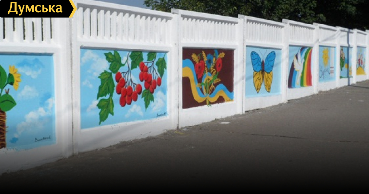 Милиционерыобеспечилиюныххудожников красками и кистями, а руководилатворческимпроцессомпреподаватель центра детского творчестваЭмилия Удовенко. На еще недавно потрепанном заборе появились радуга, калина, писанка, дети в праздничномукраинскомнаряде, и, конечно, желто-синий флаг.