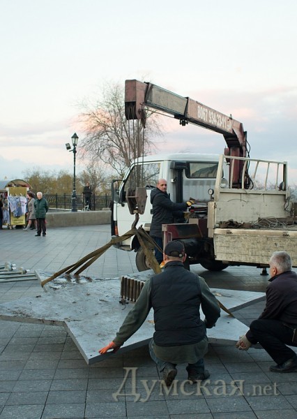 На Думской площади, пользуясь связями в горсовете, проводят неполитическую акцию работники «Горзелентреста». Милиционеры, которые оберегают покой мэрии, лениво смотрят на копошащихся коммунальщиков, но бить их дубинками не спешат. Очевидно, ждут темноты.