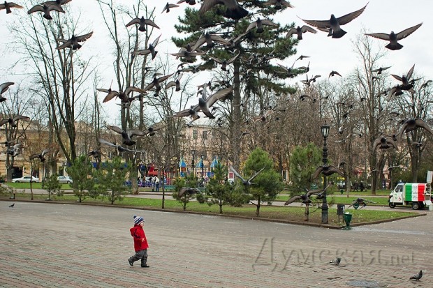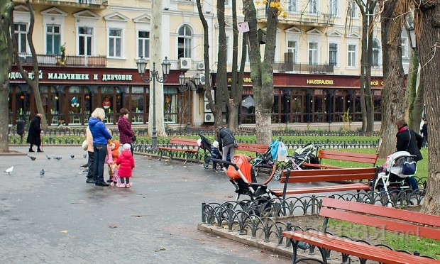 Дерибасовская пустынна — ни влюбленных парочек, ни толп туристов. С системой борются только дошколята, однако и их передвижения контролируются мамами.