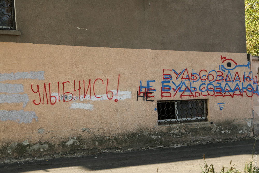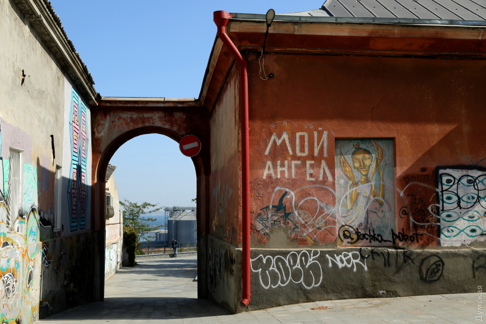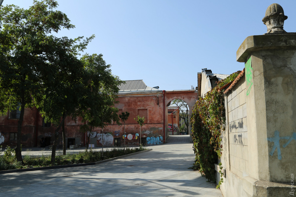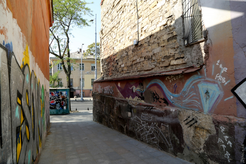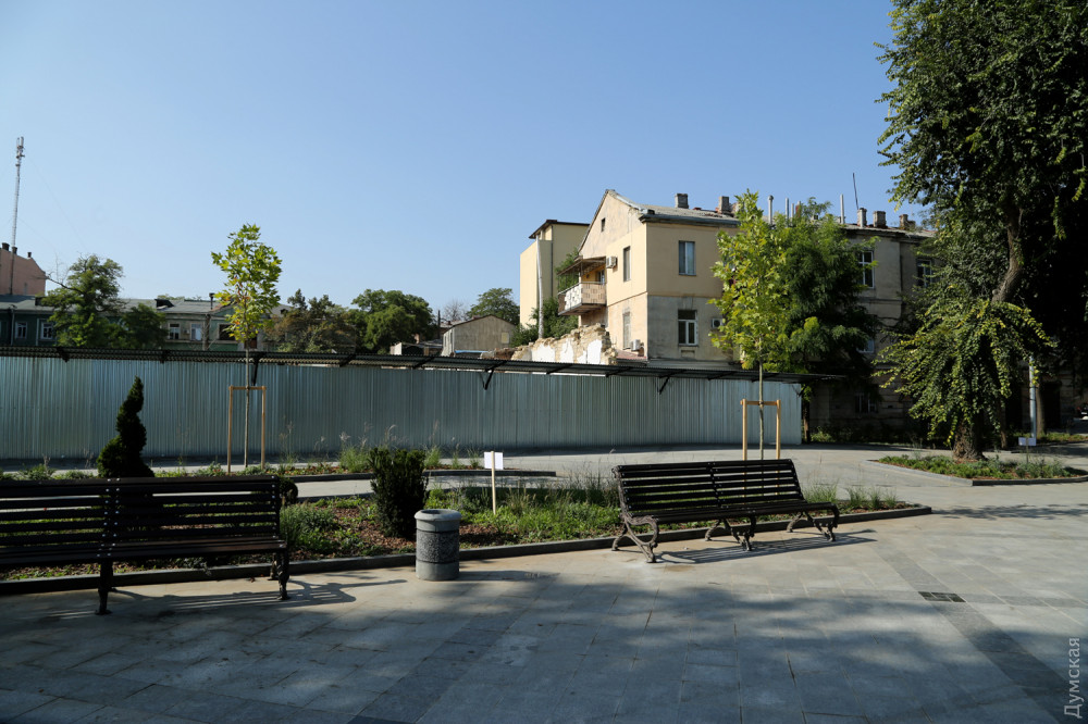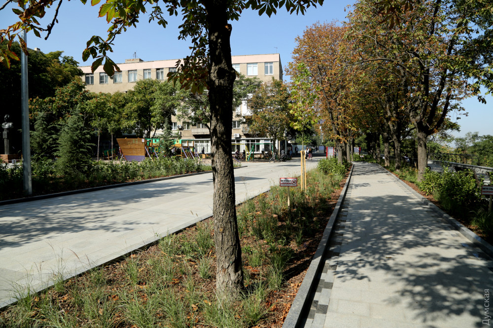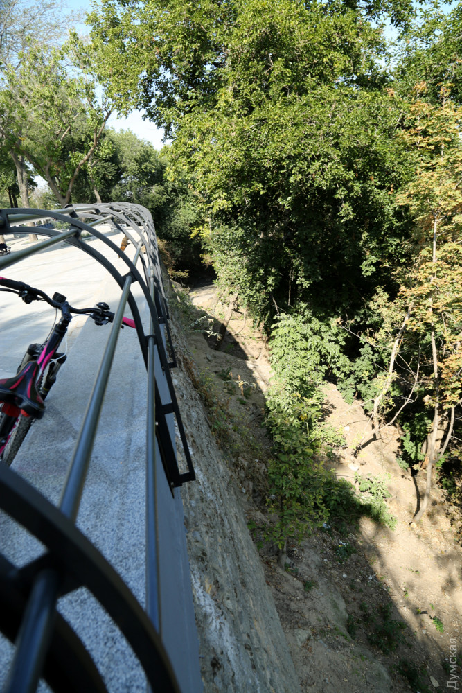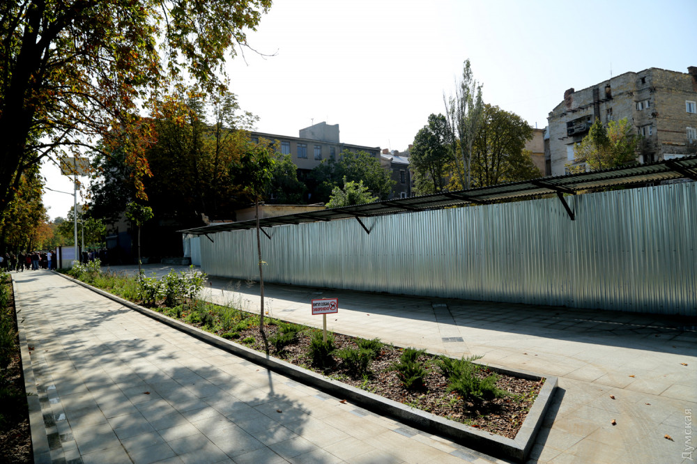 Лестницы, ведущие на склоны, не отремонтированы — там сохранился разбитый асфальт и остатки старинной лавовой плитки. Сами склоны замусорены, а в воздухе стоит устойчивый запах мочи — для одесситов не секрет, что рабочие за забором строек пользуются биотуалетами и душевыми, которые часто выходят из строя.