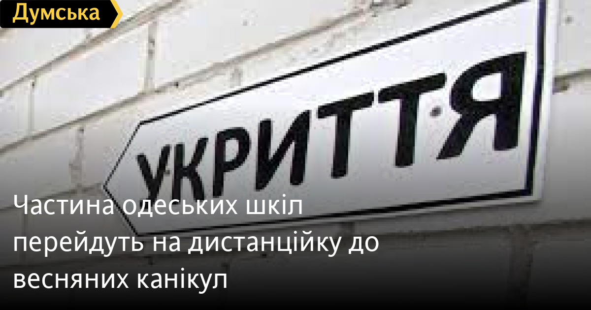Одеські школи, у яких укриття розташовані далі, ніж за 100 метрів від будівлі, перейдуть на дистанційне навчання до весняних канікул, тобто до кінця цього тижня.