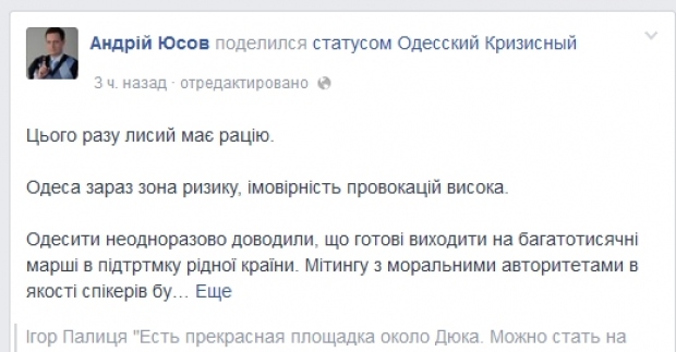 Примечательно, что губернатора в этом вопросе поддержал один из лидеров одесского «Евромайдана» Андрей Юсов: