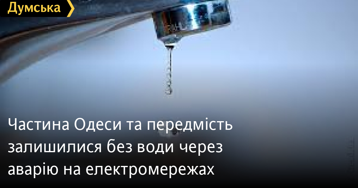 Частина Одеси та передмість залишилися без води через аварію на електромережахБез води ввечері 26 грудня залишилися частина жителів Одеси та передмість. Відключення пов'язане з аварією на електромережах, повідомили в «Інфоксводоканалі». Води немає в частині Київського та Хаджибейського районів Одеси, а також у Лиманці, Червоному Хуторі, житловому масиві «Райдужний», «Совіньйонах 1-5» і Чорноморці. У Приморському районі міста можливе зниження тиску у водопроводі. «Вживаються невідкладні заходи щодо з'ясування причин аварії та обставин, які не залежать від «Інфоксводоканалу», і здійснюються роботи зі якнайшвидшого відновлення електропостачання об'єктів водоканалу. Звертаємо увагу споживачів, що використання джерел автономного живлення неможливе через значну потужність об'єктів і технічні особливості», — розповіли в компанії. Помітили помилку? Виділяйте слова з помилкою та натискайте control-enter |