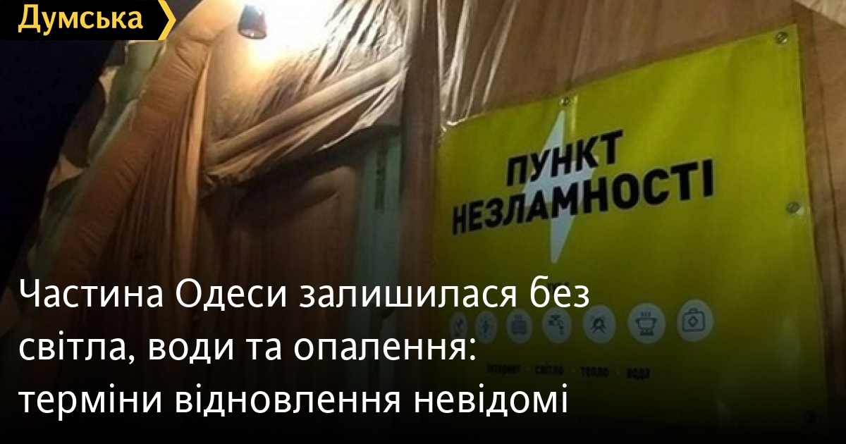 Частина Одеси залишилася без світла, води та опалення: терміни відновлення невідоміМешканці Київського району, житлового масиву «Черемушки» та частини Одеського району залишилися без електропостачання через аварію. Як повідомили в ДТЕК Одеські електромережі, енергетики вже працюють на місцях, щоб якомога швидше усунути наслідки та відновити електропостачання. В «Інфоксводоканал» зазначили, що в результаті відсутності світла «можуть спостерігатися тимчасові перебої з водопостачанням». Голова міської військової адміністрації Сергій Лисак заявив, що в Одесі введені вимушені аварійні відключення з метою недопущення перевантаження пошкодженого обладнання. «Енергетики ДТЕК продовжують локальні ремонтно-відновлювальні роботи. Пункти незнищенності в місті працюють: вони відкриті і укомплектовані всім необхідним», — запевнив він. Тим часом люди в соцмережах пишуть, що в Київському і Хаджибейському районі зникли світло, вода і опалення. СМЕРТЬ РОСІЙСЬКИМ ОКУПАНТАМ! Помітили помилку? Виділяйте слова з помилкою та натискайте control-enter |