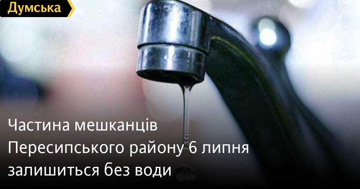 Частина мешканців Пересипського району 6 липня залишиться без води