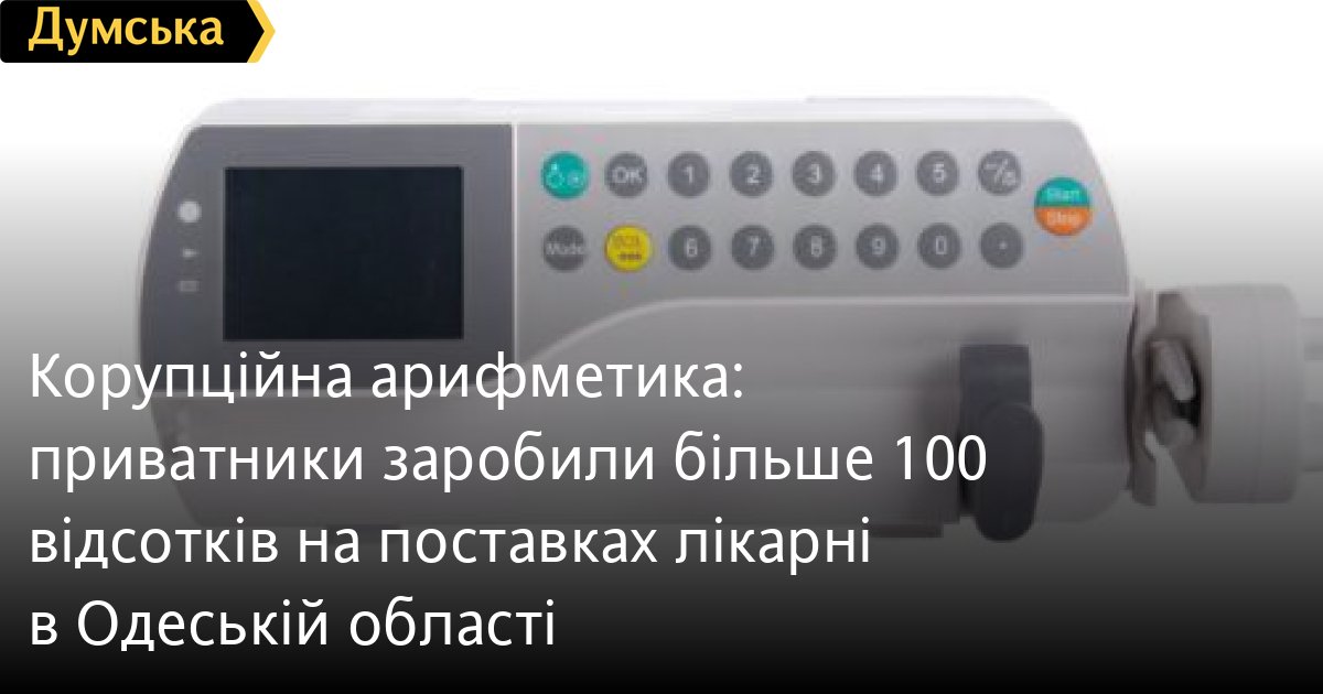Корупційна арифметика: приватники заробили більше 100 відсотків на поставках лікарні в Одеській областіДивовижні закупівлі бюджетних організацій Одеської області продовжує досліджувати «Думська». Цього разу ми зацікавилися тендером на придбання комунальним підприємством «Березовська центральна міська лікарня» в Одеській області шести медичних шприцевих насосів із значною націнкою — понад 100%. Аукціон з єдиним учасником — ТОВ «Лікарно» — відбувся 5 березня. Загальна сума закупівлі склала 144 тис. грн. За цю суму лікарня купила шість шприцевих насосів моделі MS58 (ціна за штуку — 22 тис. 429, 91). За поточним курсом — це 540 доларів за один виріб. Під простою назвою шприцевий насос ховається складний електронно-механічний медичний пристрій для точного введення мікродоз препаратів хворим. Після недовгих пошуків в інтернеті, «Думська» знайшла пропозицію придбати такий самий апарат у повній комплектації за ціною від 260 до 290 доларів. У ціну входить доставка, а також гарантія на два роки. Є й інші гуртові постачальники такого медичного обладнання. Наприклад, в Індії шприцеві насоси моделі MS58 можна купити за 12 тис. індійських рупій (137 доларів за поточним курсом). Шприцеві насоси моделі MS58 виробляють кілька іноземних фірм. «Думська» виявила найбільшого виробника таких апаратів в Китаї — Beijing Siriusmed Medical Device Co Ltd. Фірма з 2013 року входить до числа провідних виробників медичного обладнання країни. Свою продукцію компанія сертифікує за міжнародними стандартами якості — NMPA, ISO 13485, CE і BGMP. До речі, індійська оптова компанія, поки ми вивчали її пропозицію, надіслала повідомлення про готовність поставити товар у будь-якій кількості. За допомогою нескладних розрахунків виходить, що постачальник «заробив» на кожному медичному апараті понад 110 відсотків (близько 280 доларів). Якщо орієнтуватися на пропозицію індійської фірми, то й зовсім 403 долари. Звичайно, на тлі гучних корупційних скандалів з розкраданням мільйонів бюджетних гривень у воєнний час, ця сума може здатися невеликою. Однак описаний нами в цьому матеріалі тендер – зовсім не єдиний на рахунку ТОВ «Лікарно». Ми нарахували щонайменше десяток виграних компанією аукціонів в Одеській області. Деякі з них – на мільйони гривень. До слова, ТОВ «Лікарно» згідно з відкритою інформацією зареєстрована в Києві, бенефіціаром компанії є мешканець Харківської області Микола Романченко. Компанію зареєстрували напередодні повномасштабного вторгнення, а найвищу активність фірма розвинула в роки війни – переважно виграючи великі тендери з бюджетними медичними установами по всій Україні. Автор – Георгій Ак-Мурза СМЕРТЬ РОСІЙСЬКИМ ОКУПАНТАМ! Помітили помилку? Виділяйте слова з помилкою та натискайте control-enter |