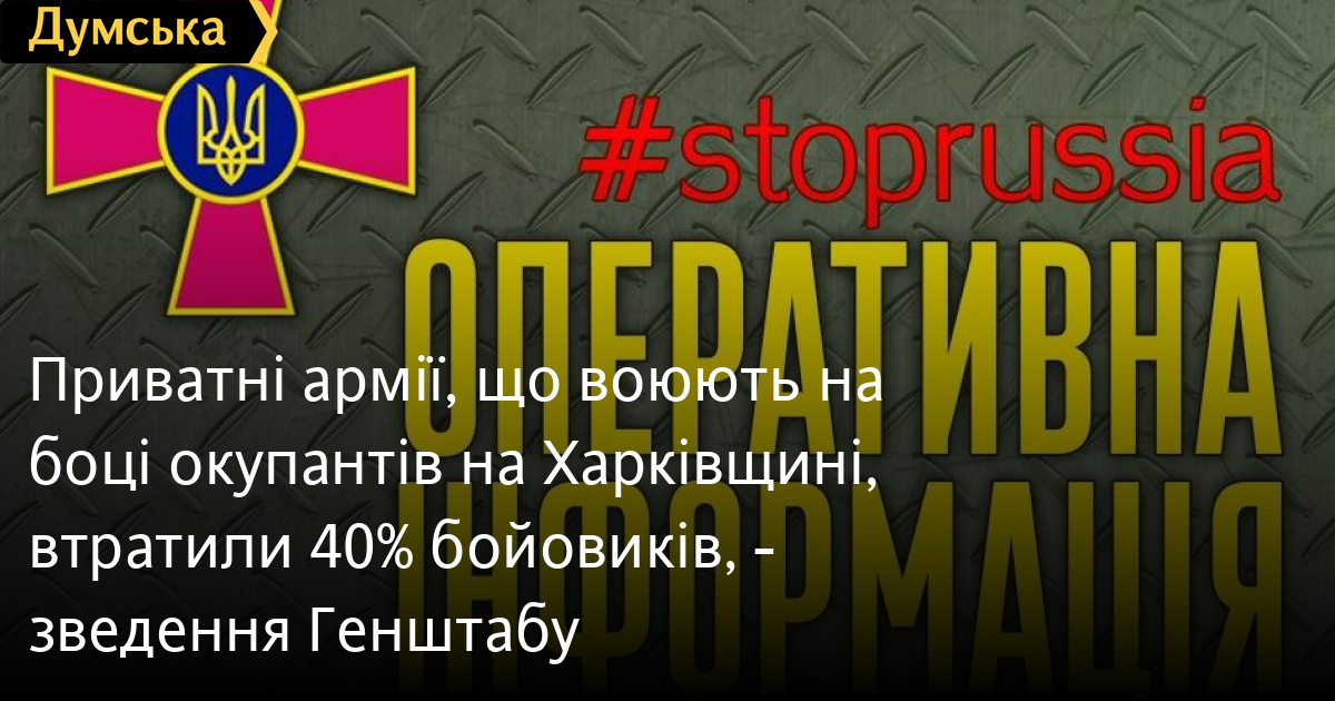 Понад 40 % бійців втратили (важкопораненими або вбитими) приватні воєнні компанії, що діють на тимчасово захоплених територіях, зокрема, в населеному пункті Олександрівка Харківської області.