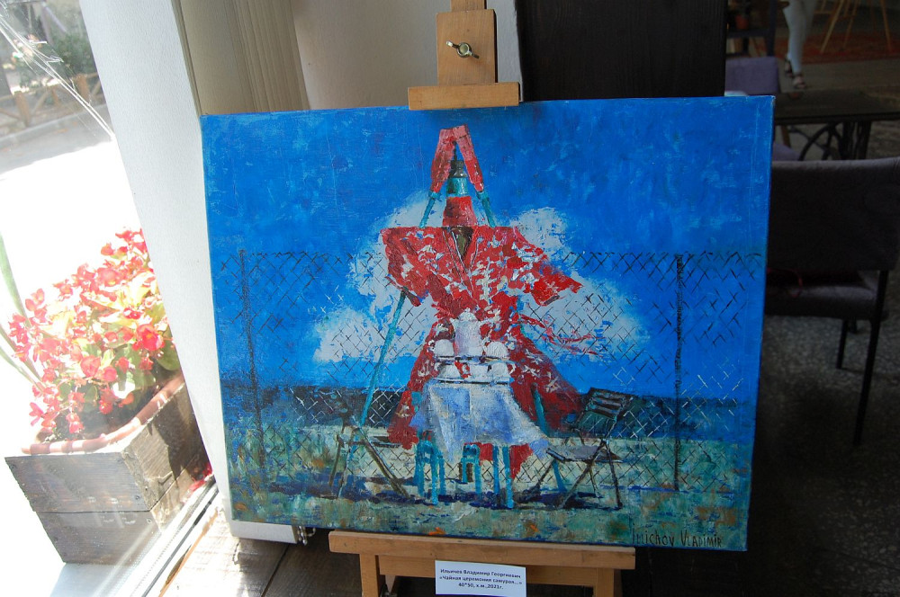 Экспозиция «Морские рубежи» гармонично сложилась из ранее написанных картин, пронизанных солнцем и ветром («Солнечный ветер», «Тихий бриз», «Туман рассеялся»), а композиция из случайно встреченных на берегу предметов превратилась в причудливый сюжет «Чайная церемония самурая».
