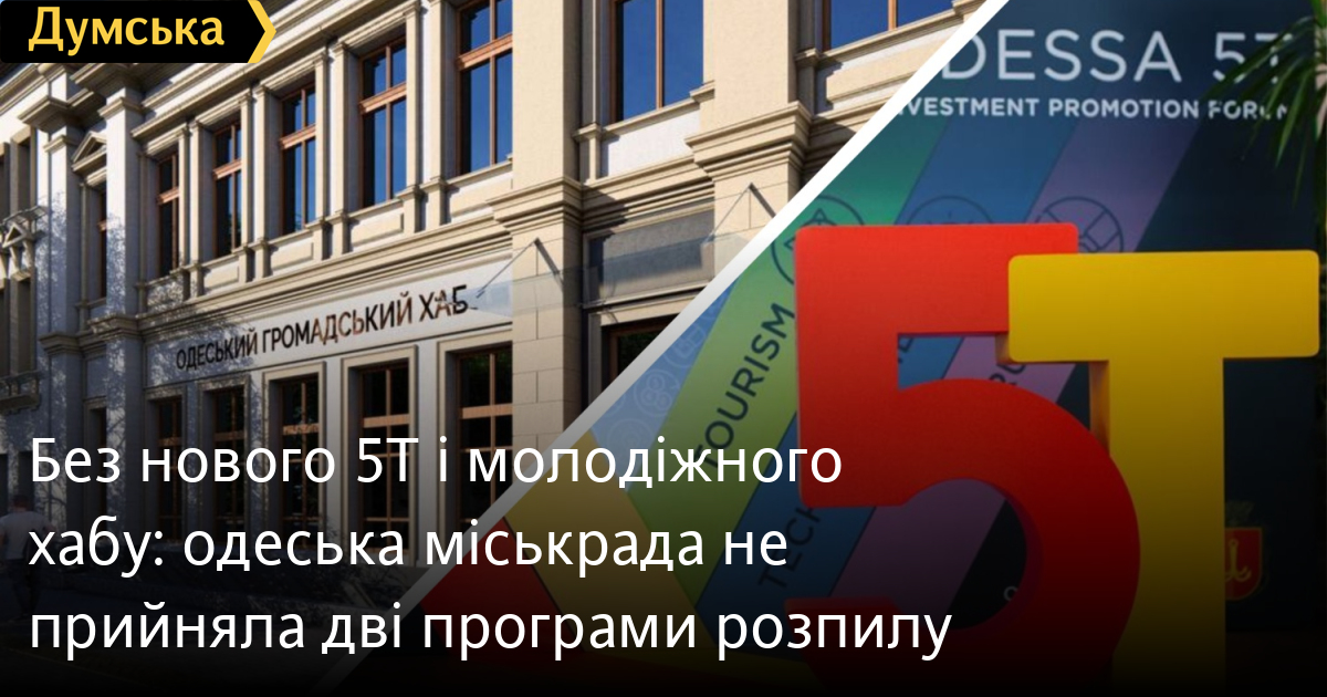 Без «нового» 5Т і молодіжного хабу: одеська міськрада не прийняла дві програми розпилуДепутати Одеської міськради провалили голосування за два сумнівні проєкти рішення: перейменування «Грантового офісу «5Т» та старт ремонту молодіжного хабу. Не вистачило трьох та п'яти голосів відповідно, передає кореспондент «Думської». Після тривалої дискусії депутати поставили під сумнів ефективність КУ «Одеса 5Т» — за перейменування установи набрався лише 31 голос. Згідно з проєктом рішення, КУ мало отримати нову назву — «Агентство з просування інвестицій «Одеса 5Т». У пояснювальній записці стверджується, що це позитивно позначиться на іміджі установи і допоможе в залученні фінансових активів. Яким чином, втім, не говориться. До голосування депутати засипали питаннями керівника «Грантового офісу» Тамілу Афанасьєву про те, якими результатами за рік може похвалитися її структура. Та зізналася, що їм вдалося залучити всього 117 тисяч доларів, і додала, що лише на початку цього року в її підпорядкуванні з'явилися співробітники, які володіють англійською мовою. «З того часу багато що змінилося, ми провели аналіз, ми активно працюємо, ми подали 350 заявок на загальну суму в 90 мільйонів гривень», — зазначила Афанасьєва. Також вона повідомила, що ведуться переговори з французьким фондом щодо передачі обладнання в одеський зоопарк для слонихи Венді. Але, про що саме йдеться, Афанасьєва не уточнила. Ба більше, чиновниця розповіла про те, що завдяки «офісу» в міському громадському транспорті незабаром з'явиться електронний квиток. Її підлеглі вже вивчають, яке обладнання необхідно закупити, а консультації їм надають мери молдавських міст. Наостанок Таміла Афанасьєва пообіцяла повернутися до питання будівництва космодрому, проєкт якого свого часу презентував віцемер Павло Вугельман. Депутати були в замішанні і відмовилися перейменовувати комунальне підприємство. Провалилося й питання про дозвіл КУ «Одеський муніципальний молодіжний центр» розпочати ремонт будівлі на Успенській, 83/85, де планують відкрити хаб. Під час обговорення депутатка міськради Наталія Жукова закликала колег зважати на пріоритети воєнного часу та наголосила на ризиках використання бюджетних коштів. «Я вважаю, що зараз цей проєкт не на часі. Є грант ПРООН у розмірі 140 тисяч доларів, але порівняймо. Грант – це кілька мільйонів гривень, а ремонт у 20 разів дорожчий, і ці кошти має забезпечити бюджет громади. До того ж усі ми знаємо, що у старих будівлях завжди з'являються додаткові роботи, і кошторис у 37 млн грн може легко перетворитися на 45 чи 50. Крім того, є серйозні питання до процедури. Тендер на ремонт відбувся ще у квітні, переможці визначені, договори укладені, а сьогодні нам пропонують заднім числом дати згоду на це. Підрядник, який переміг, фігурував у справі про службове підроблення кілька років тому. Чи ми готові закривати очі на це?» – зазначила Жукова. Вона також наголосила, що в місті є десятки громадських просторів, де молодь може працювати та реалізовувати свої ініціативи без додаткового навантаження на бюджет. За словами директора департаменту внутрішньої політики Олександра Жильцова, половина грантових коштів, а саме 3 млн гривень, уже надійшли на рахунок КУ «Одеський муніципальний молодіжний центр», і без голосів депутатів не можна розпочинати ремонтні робо