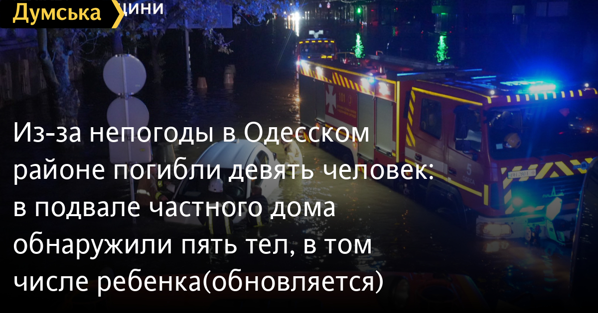 Через негоду в Одеському районі загинуло дев'ять осіб: у підвалі приватного будинку виявили п'ять тіл, в тому числі дитини (оновлюється)Дев'ять осіб загинули в Одесі внаслідок негоди, серед них одна дитина. Вранці рятувальники виявили тіло 23-річної дівчини, яку змило течією, повідомили в ДСНС. Всю ніч пожежники евакуювали людей з застряглих автомобілів, відкачували воду з будинків. Всього вдалося врятувати 362 людини. ОНОВЛЕНО О 8:54 Рятувальники відкачували воду в підвальному приміщенні приватного будинку у провулку Ейзенштейна, там виявили тіла п'яти людей — двох чоловіків, двох жінок та однієї дитини — повідомили в ДСНС. Зі слів сусідів з'явилася хвиля і будинок накрило водою до 2-го поверху. ОНОВЛЕНО О 08:21. Через негоду в місті затопило дві насосні станції в районі Пересипі та Чубаївки. Тривають роботи з ліквідації наслідків. Рух транспорту через Пересип перекрито. Крім того, перекрита дорога на розі Люстдорфської і Левітана через провал. Маршрутка і легковик, які туди провалилися, все ще на місці. СМЕРТЬ РОСІЙСЬКИМ ОКУПАНТАМ! Помітили помилку? Виділяйте слова з помилкою та натискайте control-enter |