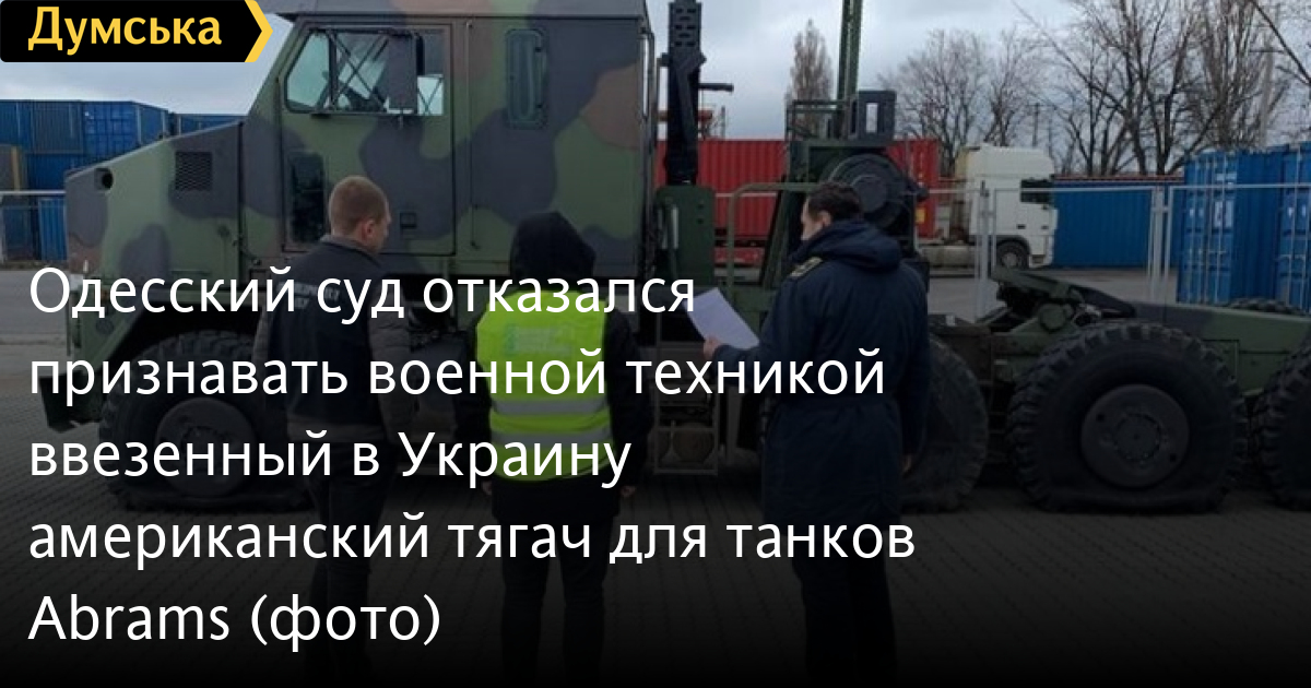 Малиновский районный суд Одессы закрыл производство о нарушении таможенных правил в отношении предпринимателя, который в апреле ввез на территорию Украины седельный тягач Oshkosh M1070 1993 года выпуска, указав в декларации, что это гражданская машина.
