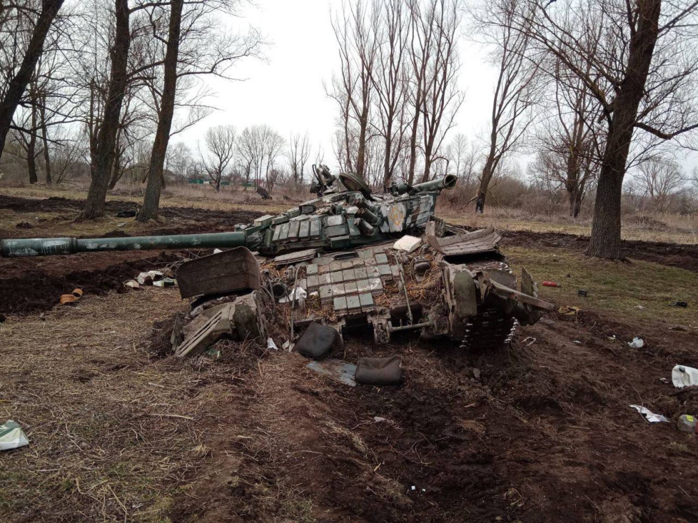 Танковое подразделение российских нацистов уничтожили подразделения оперативного командования «Север» Сухопутных войск ВС Украины в Черниговской области.