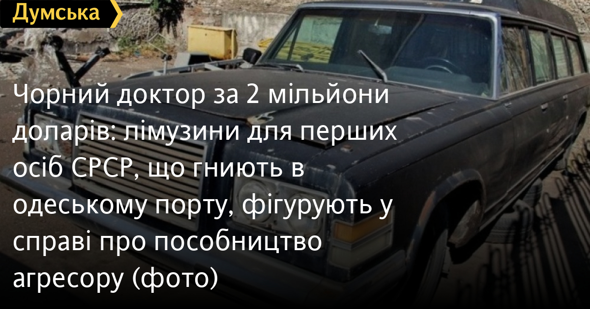 «Чорний доктор» за 2 мільйони доларів: лімузини для перших осіб СРСР, що гниють в одеському порту, фігурують у справі про пособництво агресоруРадянські лімузини ЗІЛ-111В, ЗІЛ-115А і ЗІЛ-111В, які з незапам'ятних часів стоять в одеському порту, оглянуть слідчі Служби безпеки України. Як передає кореспондент «Думської», доступ до машин їм днями надав слідчий суддя Приморського райсуду Одеси. Він задовольнив клопотання спецслужби, що розслідує справу втікача проросійського бізнесмена Руслана Тарпана, якому інкримінують, зокрема, пособництво державі-агресору. Раритетні автомобілі (ЗІЛ-115А, наприклад, випустили всього чотири штуки!) — його власність. Тарпан ввіз їх у 2008 році, але так і не зміг розмитнити, оскільки поскупився, сильно занизивши вартість лімузинів. Він судився з митницею, але судовий процес програв. «Думська» писала про цю техніку 11 років тому. ЗІЛ-115А, він же ЗІЛ-41042, — санітарний автомобіль для вищих осіб. Його пофарбували в чорний колір, щоб машина не виділялася на тлі урядового кортежу. Звідси прізвисько «Чорний доктор». «Доктор» призначався для перевезення високопоставлених хворих при вимушеній госпіталізації. Ніякого особливого медичного обладнання в салоні не було. Довжина кузова універсала в порівнянні з лімузином збільшена, а над медичною частиною салону встановили надбудову. Вага авто — майже чотири тонни. Зсередини автомобіль оброблений за найвищим класом, навіть ноші — з натуральної шкіри. Рамочки дверних вікон — дерев'яні, а в передньому відсіку для водія та охоронця — шкіряні сидіння. На консолі між ними — панель управління спецсигналами німецької фірми AEG-Telefunken: для таких автомобілів бралося все найкраще. Одеський екземпляр — один з чотирьох санітарних ЗІЛів з облицюванням, аналогічним лімузину 4104. Ця модифікація випускалася в 1980-1981 роках і коштувала 180 тисяч рублів. За такі гроші в той час можна було купити літак! Зараз ціна машини може перевищувати 2 мільйони доларів США. Два інших авто коштують трохи менше – до мільйона доларів кожне. Одеські ЗІЛи були придбані безпосередньо в автобази колишнього 4-го управління заводу імені Лихачова, коли керівництво підприємства мало намір пустити авто на металобрухт. Нагадаємо, пособництво агресору, на думку слідчого, полягає в тому, що Тарпан передав некомерційній організації «Музейно-виставковий технічний центр Автомобільно-мотоциклетного клубу Федеральної служби охорони Російської Федерації» (зареєстрована в Кремлі) свою колекцію раритетних автомобілів. Крім іншого, до її складу входять машини з кремлівського гаража. На двох з них — Packard Twelve 1936 року випуску і ЗІС-110Б випуску 1947 року — імовірно їздив радянський диктатор Йосип Сталін. Їхня вартість може досягати 2-3 млн євро. Крім того, у колекції присутні інші броньовані лімузини ЗІС і ЗІЛ — 1953, 1966, 1985 і 1998 років випуску. «Ці експонати використовуються з метою популяризації органів державної влади та силових структур РФ, формування позитивного ставлення сучасного суспільства до служби у федеральній службі охорони Росії та позитивної мотивації у молоді до проходження військової служби за контрактом, а також розвитку сучасної діяльності ФСО рф та інших силових структур держави-агресора», — зазначається в матеріалах справи. Також Тарпану інкримінують розкрадання бюджетних коштів під час ремонту одеських 
