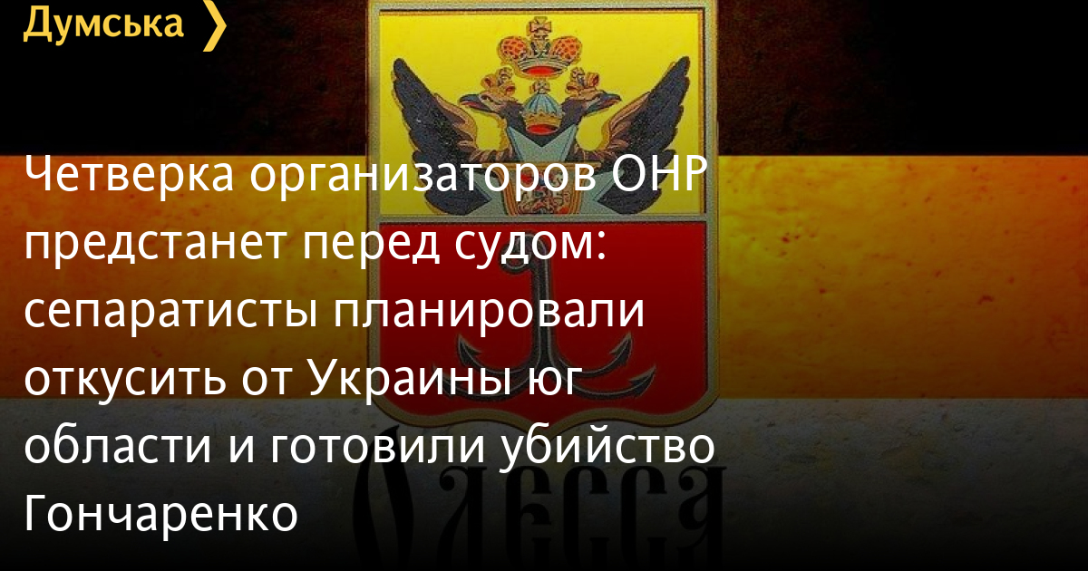 Прокуратура Одесской области направила в суд обвинительный акт в отношении четверых лиц, подозреваемых в подготовке к созданию «Одесской Народной Республики» путем свержения конституционного строя Украины, захвата государственной власти и создания не предусмотренных законом вооруженных формирований.