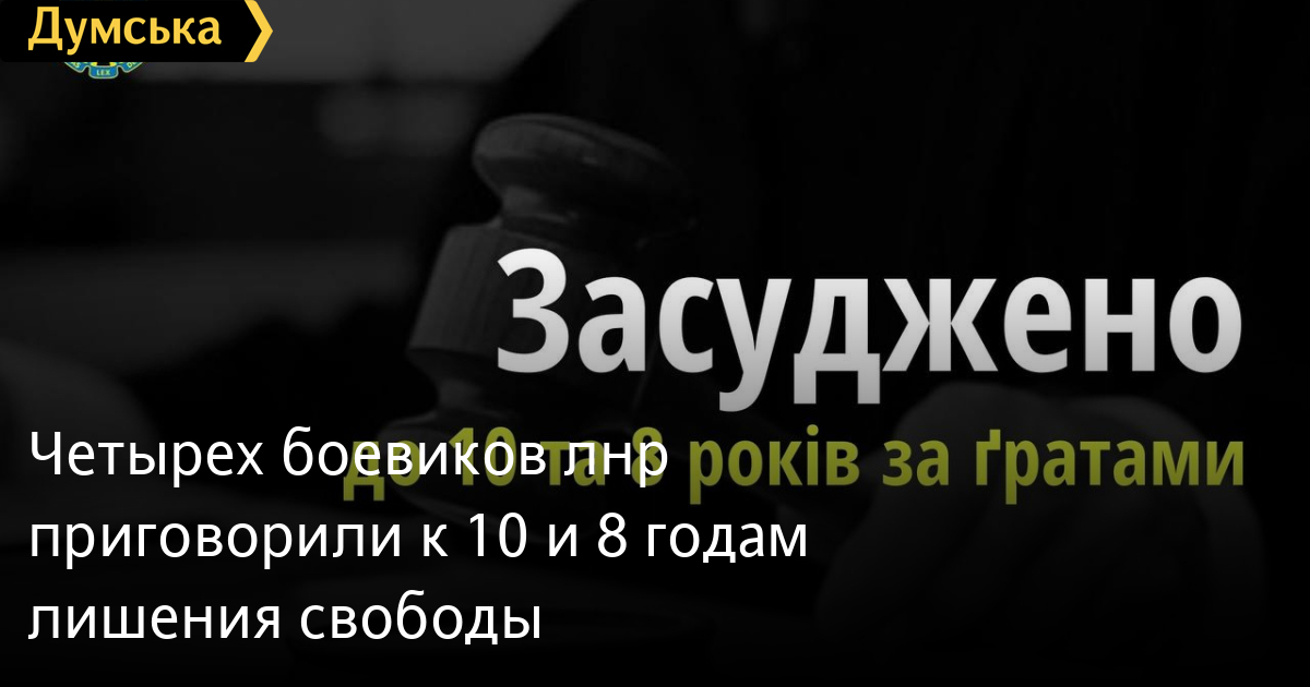 Суд приговорил четырех членов российской террористической организации «лнр» к 8 и 10 годам лишения свободы за посягательство на территориальную целостность Украины и участие в незаконных вооруженных формированиях.