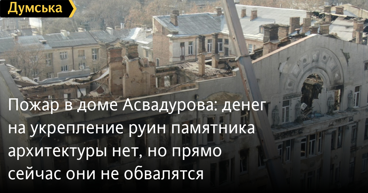 Сразу после трагедии руины дома Асвадурова осматривали специалисты Одесской государственной академии строительства и архитектуры. По их словам, здание на Троицкой «стабильно, но требует консервации»: то есть прямо сейчас оно не рухнет, но завтра все может случится. В вузе отмечают, что неоднократно писали о ситуации в разные ведомства, но нормального ответа так и не получили.