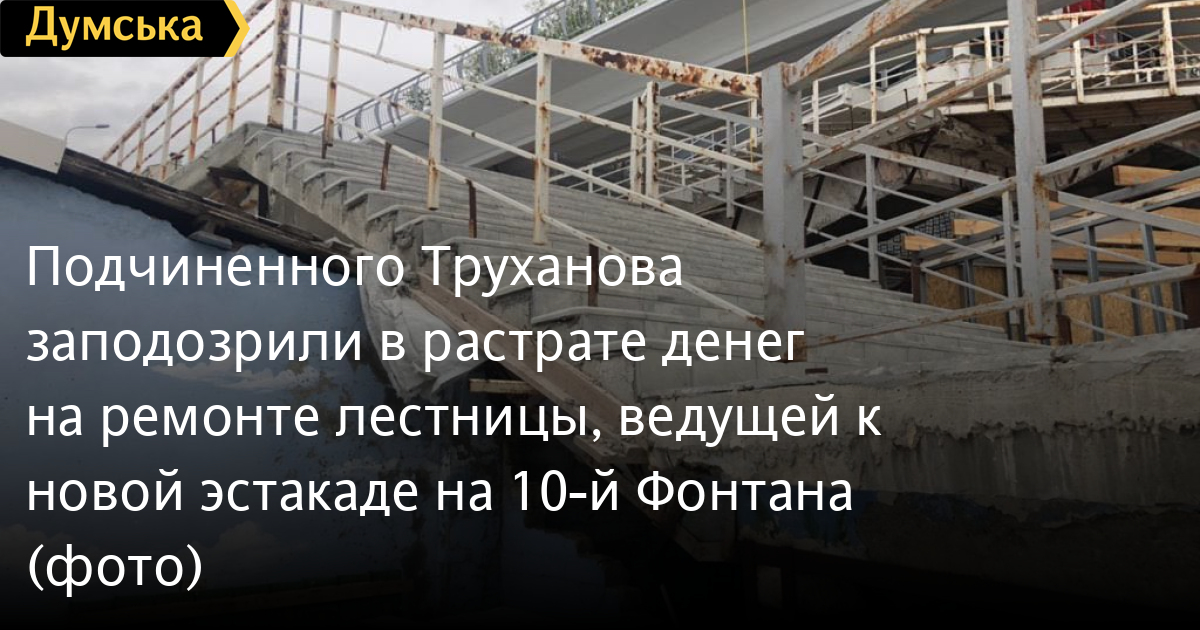 По версии следствия, Парфенов в сговоре с директором ООО «Трансмобайл» Александром Леонидовым растратил более 400 тыс. грн, выделенные на ремонт лестницы, по которой можно подняться с пляжа «Чайка» на новую велопешеходную эстакаду Трассы здоровья.