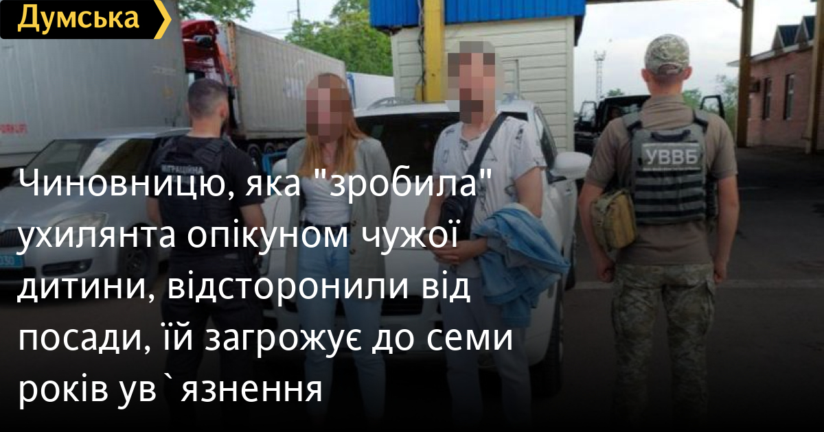 Чиновницю, яка «зробила» ухилянта опікуном чужої дитини, відсторонили від посади, їй загрожує до семи років ув`язненняОчільницю служби у справах дітей громади Одеського району підозрюють у допомозі ухилянту виїхати за кордон, прикриваючись фейковим опікунством над дитиною. Посадовиці загрожує до семи років за ґратами, повідомили в поліції регіону. Чиновниця допомогла оформити опікунство над 15-річним хлопцем. Його 29 річна мати використала свою прийомну дитину для безперешкодного вивезення ухилянтів за кордон (відомо про три епізоди). Призовник отримував документи про опіку над підлітком, які дозволяли йому з дитиною виїхати з України. Обвинувальний акт щодо матері вже в суді. У ході слідства з'ясувалося, що до видачі цих фейкових документів причетна очільниця служби у справах дітей громади Одеського району. Матеріали щодо посадовиці поліцейські виділили в окреме провадження. На прохання своєї знайомої вона внесла до документів неправдиві дані про те, що підліток проживає з 38-річним жителем Одеського району, який і забезпечує його базові потреби. Також фігурантка передала знайомій погоджений та завірений печаткою бланк заяви про надання згоди на виїзд за кордон неповнолітньому у супроводі нового опікуна, до якої згодом були внесені неправдиві дані. Посадовиці повідомили про підозру у внесенні службовою особою до офіційних документів завідомо неправдивих відомостей та у сприянні організації незаконного переправлення осіб через державний кордон України шляхом надання засобів, вчиненому службовою особою з використанням свого службового становища. Суд обрав підозрюваній запобіжний захід у вигляді застави розміром сто тисяч гривень. Жінку відсторонили від посади. Їй загрожує до семи років ув'язнення з трирічною забороною обіймати певні посади чи займатися певною діяльністю. СМЕРТЬ РОСІЙСЬКИМ ОКУПАНТАМ! Помітили помилку? Виділяйте слова з помилкою та натискайте control-enter |