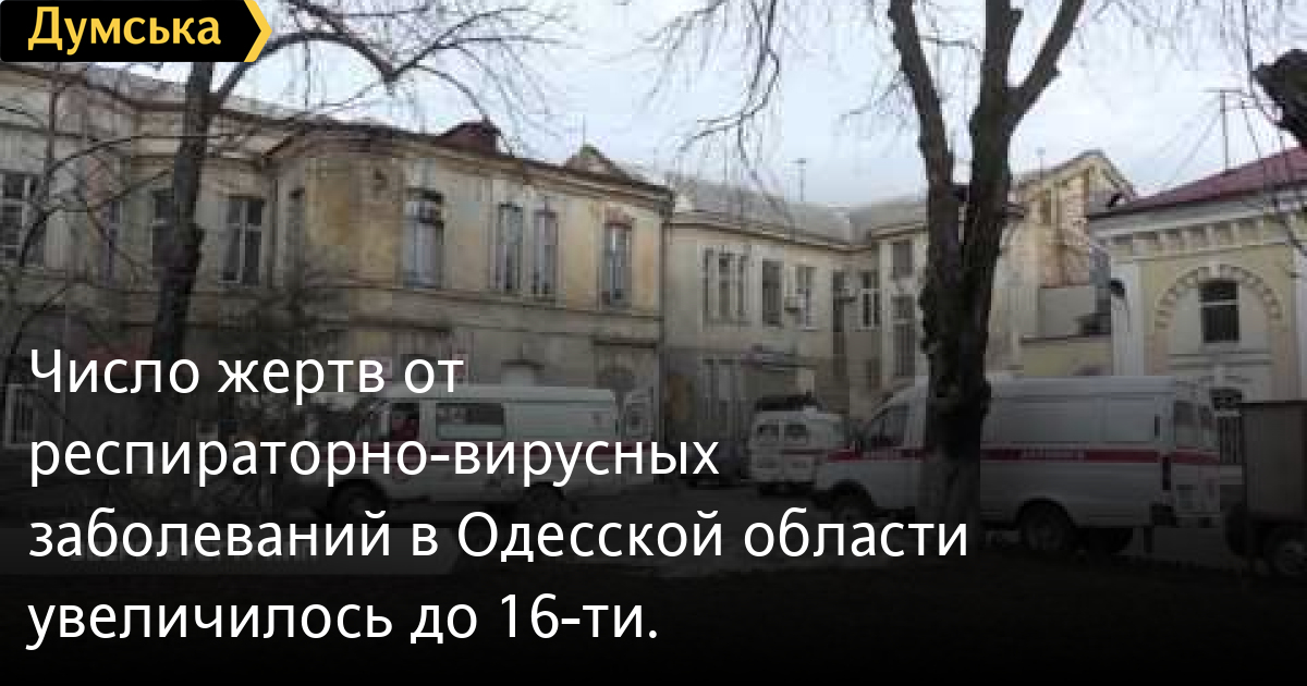 Число жертв от респираторно-вирусных заболеваний в Одесской области увеличилось до 16-ти.СМЕРТЬ РОССИЙСКИМ ОККУПАНТАМ! Заметили ошибку? Выделяйте слова с ошибкой и нажимайте control-enter Думская ТВ. Сюжеты: