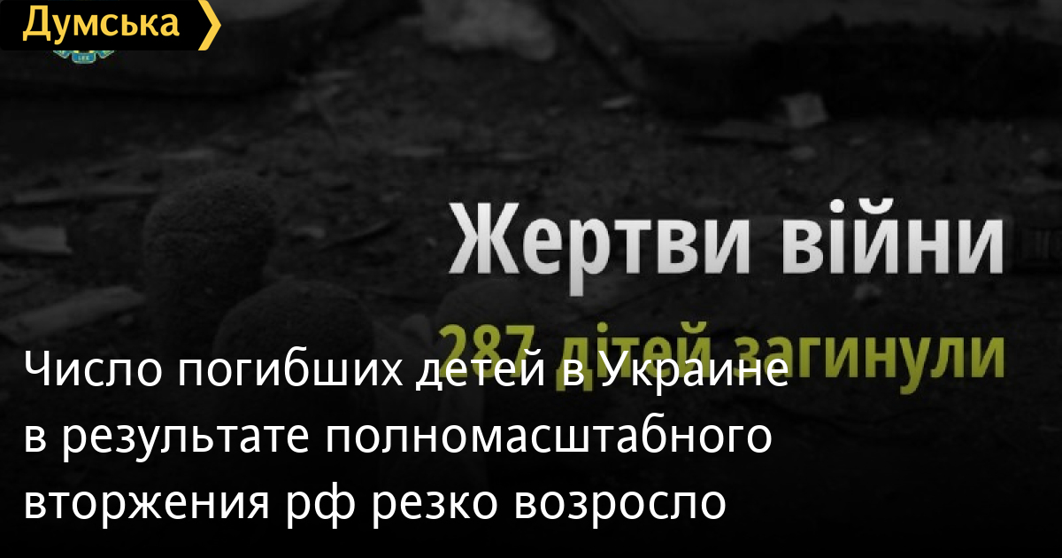 В результате полномасштабного военного вторжения рф в нашей стране от рук российских оккупантов погибли уже 287 детей.