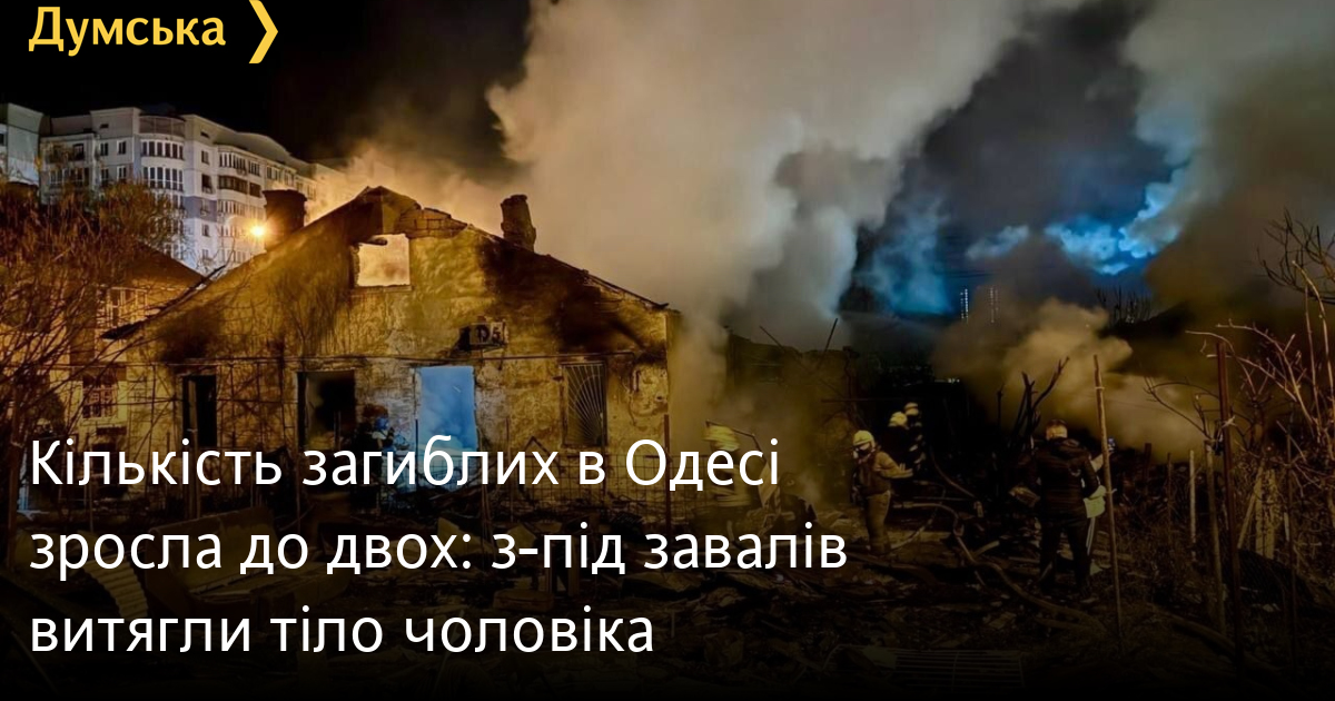 Кількість загиблих в Одесі зросла до двох: з-під завалів витягли тіло чоловікаКількість загиблих у результаті масованої атаки на Одесу збільшилася до двох. З-під завалів рятувальники дістали тіло чоловіка, повідомили в прокуратурі. Раніше від отриманих травм у лікарні померла 36-річна жінка. Нагадаємо, постраждали 11 осіб, серед них — 9-річний хлопчик. Також госпіталізовано п'ять жінок віком від 29 до 87 років і п'ятеро чоловіків від 42 до 80 років. Пошкоджено дві п'ятиповерхівки, 10 багатоквартирних і 12 приватних будинків, а також 10 автомобілів. Є серйозні руйнування в 5-му пологовому будинку, поки що він не приймає пацієнтів. Постраждали також два дитячі садки та вищий навчальний заклад. СМЕРТЬ РОСІЙСЬКИМ ОКУПАНТАМ! Помітили помилку? Виділяйте слова з помилкою та натискайте control-enter |