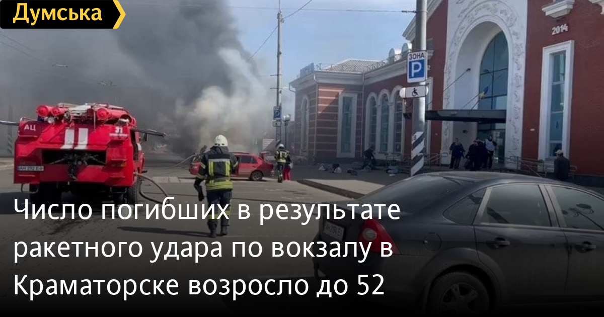 Число жертв ракетного удара по железнодорожному вокзалу в городе Краматорск возросло до 52 человек. 109 получили ранения.