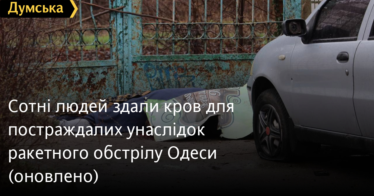 «Тим часом уже понад 200 одеситів і гостей міста після ворожої атаки здали кров для постраждалих, ще близько сотні людей стоять у чергах біля пунктів прийому», — зазначив керівник ОВА.