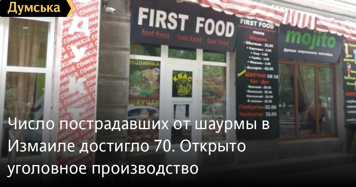«20 июля в 17:05 в дежурную часть Измаильского отдела полиции поступило сообщение о том, что в инфекционную больницу города Измаил за врачебной помощью с симптомами пищевой токсикоинфекции и острой кишечной инфекции обратился 41 человек, — отметили в полиции. — Выездом следственно-оперативной группы на место происшествия было установлено, что все госпитализированные граждане купили в одном из заведений города шаурму (на проспекте Суворова, 54, - Ред.). По данному факту возбуждено уголовное производство».