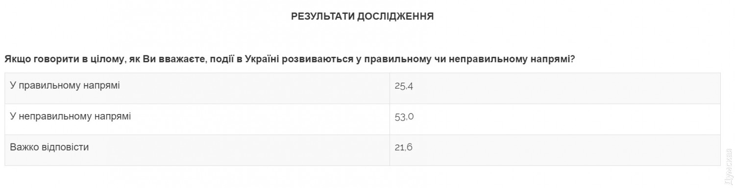 Количество украинцев, недовольных ситуацией в стране, за полгода выросло втроеЦентр Разумкова провел социологическое исследование на тему того, как украинцы оценивают ситуацию в стране, насколько доверяют исполнительным и правоохранительным органам, и как оценивают работу правительства. Результаты показали, что только 25% граждан считают, что события в стране развиваются в правильном направлении. В сентябре 2019 года таковых было 57%, а в декабре – 44%. При этом более половины украинцев – 53% уверены, что события развиваются в неправильном направлении. Для сравнения: в сентябре прошлого года недовольных было всего 17%, а в декабре – 36%. Также уменьшилось количество людей, которые верят, что Украина сможет преодолеть существующие проблемы и трудности в ближайшие несколько лет. Сейчас позитивно настроенных всего 21%, хотя еще в сентябре их было почти вдвое больше – 41%. Что касается уровня доверия населения, то по этому показателю лидируют Вооруженные Силы Украины — им доверяет 69% граждан. Немного ниже доверие к ГСЧС – 65%. А Государственной пограничной службе и Нацгвардии доверяют 60% жителей страны. При этом лидером в рейтинге недоверия оказались чиновники. Им не верит 77% респондентов. За ними следует судебная система – 76%, местные суды – 71%, прокуратура – 68% и Специальная антикоррупционная прокуратура – 66%. НАБУ не доверяет 65% наших сограждан, а правительству Украины — 64,5%. С поддержкой правительства дела обстоят не лучше. Полностью поддерживают его деятельность только 6% людей, а не поддерживает – 51%. Аналогичная картина с поддержкой премьер-министра Украины Алексея Гончарука. Полностью поддерживает его лишь 6% украинцев, а не поддерживает – 52%. Уровень доверия к правительству сильно снизился за последние полгода. Если в сентябре 2019 года ему верили 57% респондентов, то сейчас таковых осталось только 28%. Отметим, исследование проводилось с 13 по 17 февраля 2020 года. Было опрошено 2018 респондентов в возрасте от 18 лет во всех регионах Украины, кроме Крыма и оккупированных территорий Донбасской и Луганской областей. СМЕРТЬ РОССИЙСКИМ ОККУПАНТАМ! Заметили ошибку? Выделяйте слова с ошибкой и нажимайте control-enter |