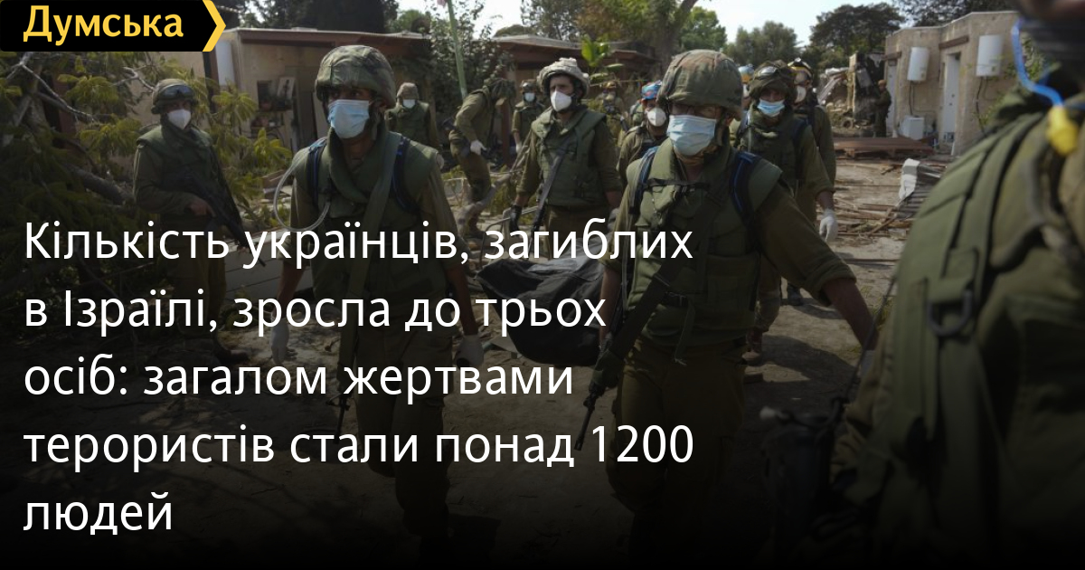 Кількість українців, загиблих в Ізраїлі, зросла до трьох осіб: загалом жертвами терористів стали понад 1200 людейКількість загиблих українців в Ізраїлі зросла до трьох осіб. Поранення дістали щонайменше дев'ять наших співгромадян. Про це повідомив речник Міністерства закордонних справ Олег Ніколенко. Він зазначив, що оперативний штаб МЗС в Ізраїлі підтвердив загибель ще одного українця. Таким чином кількість жертв серед громадян України зросла до трьох. Ще шість громадян вважаються зниклими безвісти. «Поранення внаслідок бойових дій дістали дев'ятеро українців, їхній стан і місця госпіталізації уточнюються», — наголосив Ніколенко. За його словами, наразі близько 700 українців не можуть виїхати з Ізраїлю через скасовані авіарейси, а 170 громадян заявили про бажання евакуюватися із сектора Гази. МЗС та інші відомства шукають шляхи для виїзду. У Міністерстві закордонних справ Ізраїлю розповіли, що внаслідок бойових дій на території країни загинуло понад 50 іноземців, серед яких, крім українців, громадяни США, Непалу, Аргентини, Британії, Канади, Таїланду. Зазначимо, що за останніми даними, внаслідок атаки бойовиків ХАМАС на Ізраїль, там загинули понад 1200 осіб. Днем раніше стало відомо про геноцид, який терористи влаштували в кібуці Кфар-Аза. Після того, як ізраїльська армія взяла під контроль цю територію, там було знайдено сотні трупів: чоловіків, жінок і дітей. Тіла із зав'язаними руками, зі слідами тортур, спалені живцем. Бойовики катували і розстрілювали людей цілими сім'ями. Серед убитих 40 ізраїльських немовлят і дітей, деяким із них відрубали голови та інші частини тіла.