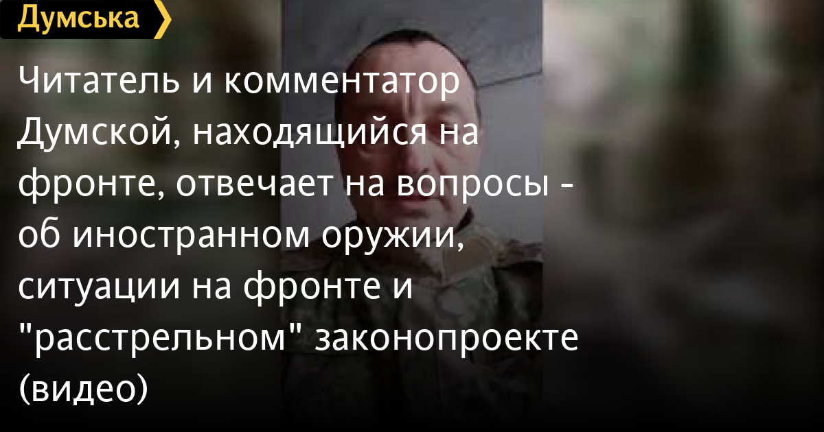 Постоянный читатель и комментатор «Думской» vatakaratel, который сейчас защищает Украину на юге нашей страны, отвечает на вопросы — об иностранном оружии, о ситуации на передовой, о политических событиях и «расстрельном» законопроекте (с ненормативной лексикой).