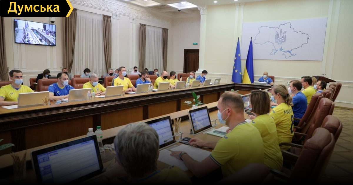 Члены правительства пришли на заседание Кабмина в футболках национальной сборной УкраиныВ Кабмине отметили вчерашнюю победу национальной сборной Украины по футболу патриотическим флешмобом. Члены правительства пришли на заседание, облачившись в футболки национальной сборной Украины. Кто-то был в желтой форме, кто-то в синей. «Правительство поздравляет сборную Украины по футболу с выходом в 1/4 финала Евро-2020. Это огромный успех команды и тренерского штаба. Такие вещи очень мотивируют и объединяют страну, которая всем сердцем болеет за украинскую сборную. Спасибо нашим игрокам! Вперед — к новым победам!»- написал премьер-министр Денис Шмыгаль в своем Телеграм-канале. Напомним, Украина обыграла Швецию и вышла в ¼ финала. СМЕРТЬ РОСІЙСЬКИМ ОКУПАНТАМ! Помітили помилку? Виділяйте слова з помилкою та натискайте control-enter |