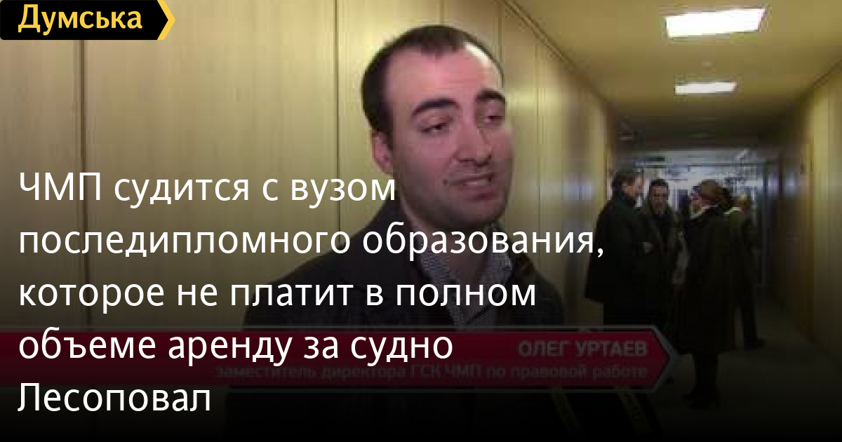 ЧМП судится с вузом последипломного образования, которое не платит в полном объеме аренду за судно «Лесоповал»ЧМП судится с частной кампанией, которая не желает платить в полном объеме арендную плату за судно «Лесоповал». Дело рассматривают в Хозяйственном суде Одесской области. Напомню, в 2009 году между пароходством и вузом «Институт последипломного образования» был заключен договор бербоут-чартера, согласно которому судовладелец передал фрахтователю учебно-тренажерное плавсредство на условиях аренды СМЕРТЬ РОССИЙСКИМ ОККУПАНТАМ! Заметили ошибку? Выделяйте слова с ошибкой и нажимайте control-enter Думская ТВ. Сюжеты: