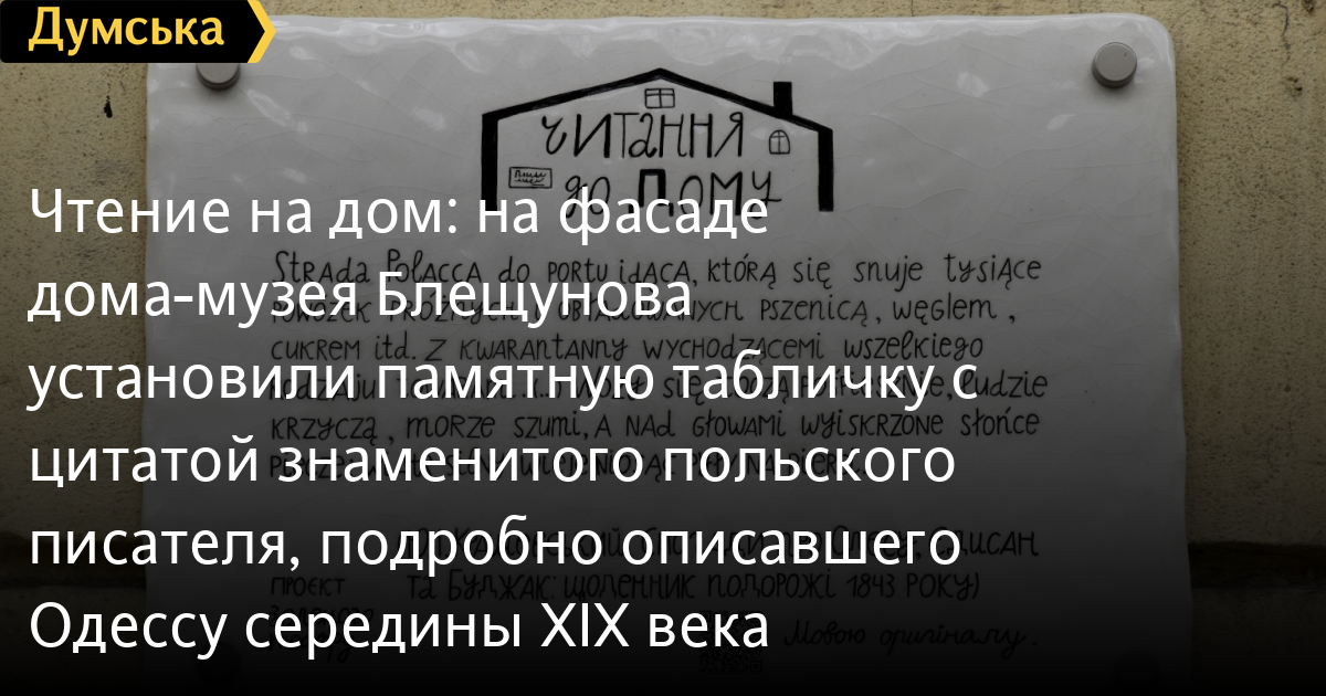 «Чтение на дом»: на фасаде дома-музея Блещунова установили памятную табличку с цитатой знаменитого польского писателя, подробно описавшего Одессу середины XIX векаПамятную табличку с цитатой польского писателя Юзефа Крашевского установили сегодня на фасаде одесского дома-музея Александра Блещунова, передает корреспондент «Думской». Это восьмая по счету табличка, которая появилась в Одессе в рамках совместного проекта Зеленого театра и турагентства «Тудой-Сюдой» «Чтение на дом». ![]() Команда проекта «Чтение на дом»: Сергей Ровинский, Анастасия Шамша, Дарья Филиппова (дизайнер), Мария Варна, Маргарита Сажко (керамистка), экскурсионное агентство «Тудой-Сюдой» Текст на табличке написан языком оригинала и переводится так: «Strada Polacca (с итальянского «улица Польская», — Ред.), которая ведет к порту, которой снуют тысячи возов, пустых и нагруженных пшеницей, углем, сахаром и другими выпущенными с карантина всякого вида товарами. ( ) Повозки катятся второпях, люди кричат, море шумит, а над головами сверкает палящее солнце; ветер сильный веет, неся пыль на груди». Авторы проекта обещают, что вскоре появится путеводитель с иллюстрациями, в котором будут указаны все установленные таблички на одесских улицах. Кроме того, в июне проект «Чтение на дом» будет представлен на выставке в «Мистецький Арсенал». Отметим, что табличка создавалась при поддержке Генерального Консульства Республики Польша в Одессе, а на открытии присутствовала генеральный консул Катажина Солек. Краевед и переводчик Стелла Михайлова вручила дипломату книгу Юзефа Крашевского «Воспоминания об Одессе, Едисане и Буджаке», которая была ею впервые переведена в 2019 году. «По иронии судьбы Крашевский, великий польский писатель, который был в Одессе в 1843 году и оставил уникальные, ни с чем не сравнимые воспоминания, никогда ранее не переводился с польского языка. Поэтому я вязала на себя такой труд, — рассказала Стелла Михайлова. — Эта книга совершенно удивительная, и Одесса сегодня воздала должное великому польскому писателю». Писатель побывал в Одессе летом 1843 года и подробно описал увиденное в своем дневнике, предварительно детально погрузившись в историю города. Впервые книга была издана в 1845 году. По словам переводчицы, во время путешествия Крашевского в Одессу еще не было фотографии, но писатель очень подробно описывал свои наблюдения. Сегодня собранная им информация помогает реставраторам в работе при восстановлении Воронцовского дворца. Ранее такие таблички появились на Строгановском мосту (с отрывком из книги Юрия Олеши «Стадион в Одессе»), на территории Зеленого театра (с цитатами Владимира Жаботинского и Михаила Жванецкого), на Софиевской, 17 (с отрывком из «Одесских рассказов Исаака Бабеля), на стене дома №133 по Старопортофранковской (еще один текст Жванецкого) и у входа на Суворовскую аллею парка имени Шевченко (цитата Леси Украинки). СМЕРТЬ РОССИЙСКИМ ОККУПАНТАМ! Заметили ошибку? Выделяйте слова с ошибкой и нажимайте control-enter |