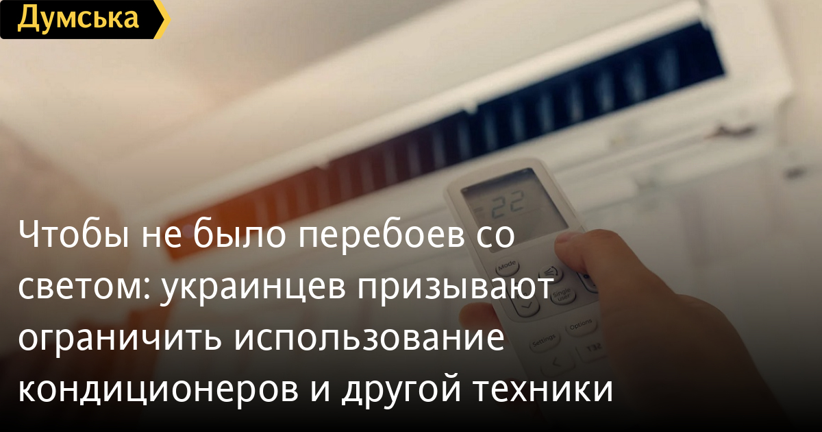 Щоб не було перебоїв зі світлом: українців закликають обмежити використання кондиціонерів та іншої технікиОбмежити використання кондиціонерів, пральних машин, бойлерів, прасок та іншої техніки у вечірній час закликають українців у НЕК «Укренерго». У компанії розповіли, що через настання спеки стрімко зростає споживання електроенергії. Пік споживання припадає на час з 16:00 до 23:00. Щоб забезпечити збільшення попиту, необхідно підвищити виробництво електрики, але зараз можливості електростанцій обмежені. Багато енергоблоків не працюють через пошкодження або зупинені для проведення ремонтів. У зв'язку з цим у НЕК «Укренерго» просять споживачів по можливості дотримуватися наступних правил: - намагатися не використовувати кондиціонери з 16:00 до 23:00 або включати енергоефективний режим і не охолоджувати приміщення нижче 23 градусів за Цельсієм. - перенести використання потужної техніки (пральні машини, бойлери) на нічний час. По можливості використовувати їх по черзі. - зменшити використання електрочайників і прасок з 16:00 до 23:00 або набирати рівно стільки води, скільки необхідно саме зараз. Нагадаємо, 5 липня у багатьох районах Одеси відбулися перебої зі світлом. Тоді в ДТЕК повідомили, що ймовірна причина відключень — перевантаження через масове використання енергоємних пристроїв. СМЕРТЬ РОСІЙСЬКИМ ОКУПАНТАМ! Помітили помилку? Виділяйте слова з помилкою та натискайте control-enter |
