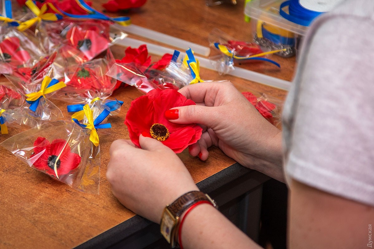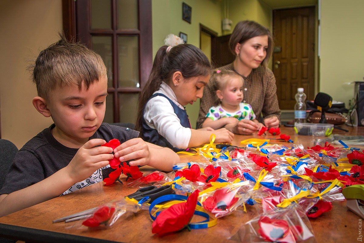 В преддверии 8 мая - Дня памяти и примирения, маленькие одесситы учились своими руками делать Красный мак - международный символ памяти жертв всех военных и гражданских конфликтов. Мастер-класс по рукоделию прошел в одесской региональной организации партии Блок Петра Порошенко «Солидарность». Как рассказала руководитель секретариата партии Валентина Шульц, подобные мероприятия проходят уже второй год подряд и становятся хорошей традицией. «Мы приглашаем переселенцев, детей из многодетных семей, чтобы они провели этот день с нами, изготовили эти цветы, — рассказала Валентина. — Очень важно донести до детей, что мак - это символ всех погибших в войне, чтобы они в будущем, когда станут взрослыми, сохраняли мир». Любовь Шейх — мать троих детей, вынужденная покинуть родную Макеевку после начала боевых действий, помогла создавать маки своей дочке Кристине. Двухлетняя малышка в восторге от ярких и красивых цветов, а ее старший брат, 8-летний Натан, пообещал подарить два собственноручно сделанных значка своим одноклассницам. «Для детей зачастую 8 и 9 мая это просто еще одни выходные в школе, а такие мероприятия помогают рассказать детям нашу историю. Нам рассказали, в честь чего эти красные маки, и я думаю, что в их памяти это осталось. Для нас, приехавших из зоны АТО, очень важно мирное небо», — поделилась женщина. Всего партийцы планируют сделать 300 алых цветов. Часть раздадут военнослужащим и курсантам Военной академии, а часть — прохожим в парке Шевченко. СМЕРТЬ РОСІЙСЬКИМ ОКУПАНТАМ! Помітили помилку? Виділяйте слова з помилкою та натискайте control-enter |