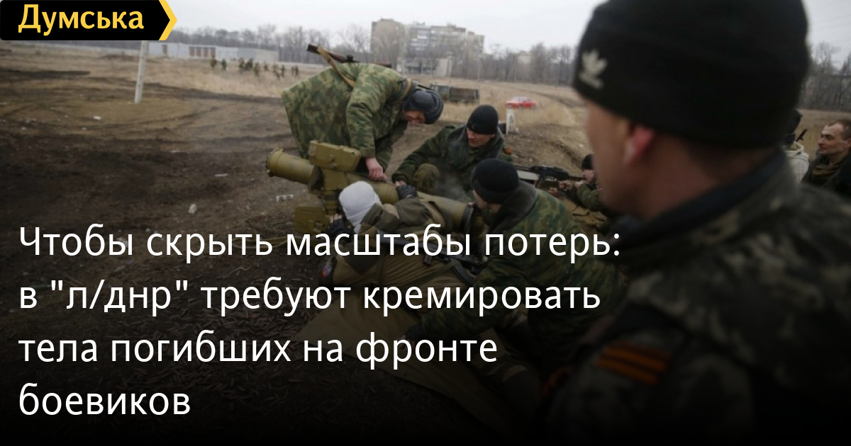 Щоб приховати масштаби втрат: у «л/днр» вимагають кремувати тіла загиблих на фронті бойовиківЩоб уникнути невдоволення примусовою мобілізацією і приховати реальні масштаби втрат, у «л/днр» настійно рекомендують кремувати тіла загиблих на фронті бойовиків. Як повідомляє український Генштаб, відповідні розпорядження отримали від так званих «мгб» агентства ритуальних послуг. Ще одне розпорядження полягає в тому, що на похороні можуть бути присутніми не більше ніж шість осіб. «Останнім часом безповоротні втрати з примусово мобілізованих до армії рф мешканців Луганська та його околиць становлять близько 70 осіб на день», — йдеться в повідомленні Генштабу. СМЕРТЬ РОСІЙСЬКИМ ОКУПАНТАМ! Помітили помилку? Виділяйте слова з помилкою та натискайте control-enter |