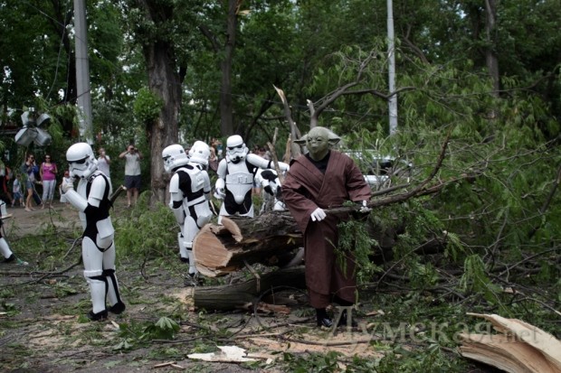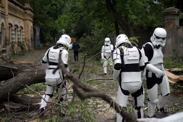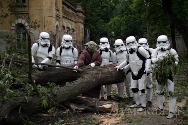 «Космическая» помощь: в расчистке завалов на одесских улицах участвуют имперские штурмовики и магистр ЙодаНепримиримые враги — подданные императора Галактики Палпатина и сторонники Республики — объединились, чтобы оказать помощь Одессе. пострадавшей от удара стихии. В расчистке городских улиц от завалов принимают участие имперские штурмовики, магистр джедаев Йода, а также любимец публики Чубакка. Что касается Темного Лорда Дарта Вейдера, то генерал имперской армии и флота возглавил оперативный штаб, который руководит ликвидацией последствий урагана. СМЕРТЬ РОСІЙСЬКИМ ОКУПАНТАМ! Помітили помилку? Виділяйте слова з помилкою та натискайте control-enter Новини по цій темі: 31 травня 2014: Год после урагана: как Одесса залечила раны (фоторепортаж) 4 лютого 2014: Ботсад Одесского университета так и не получил деньги на ликвидацию последствий урагана 31 грудня 2013: Открытия, возвращения и провалы: знаковые события 2013-го года 26 грудня 2013: Десятка культурных событий 2013-го: пушкинский скандал, провал "ойстрахизации" и ураган против кантаты 21 листопада 2013: Одесские вузы получат 14 миллионов гривен на ликвидацию последствий урагана 31 мая 2 листопада 2013: 1096 дней Алексея Костусева: обещания и дела народного хозяйственника |