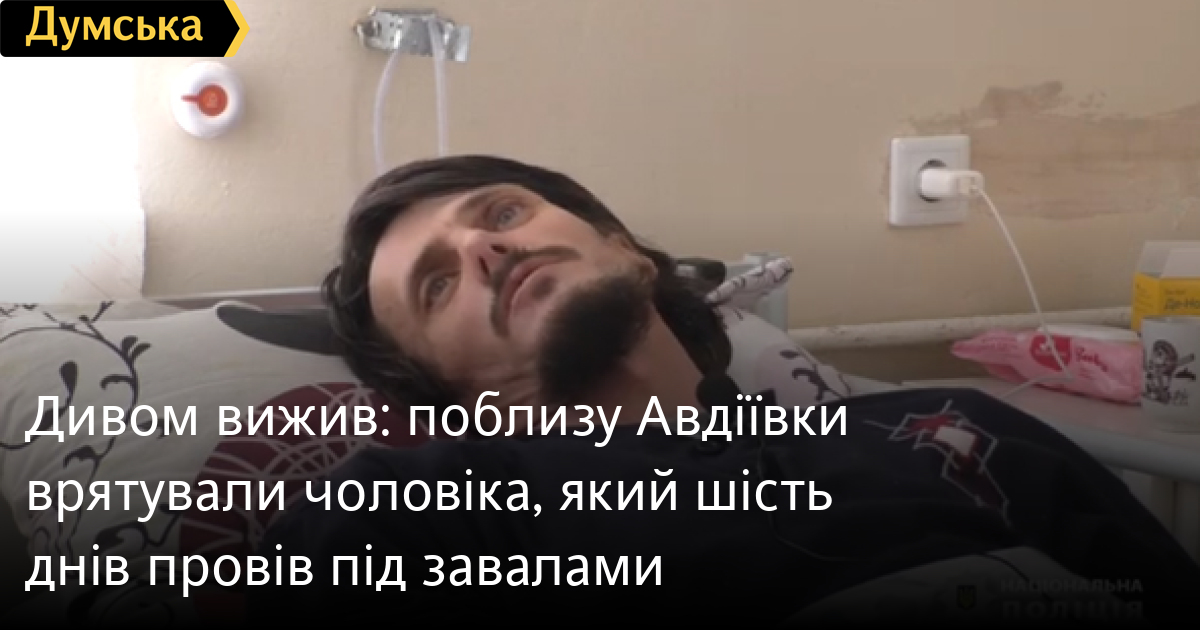 44-річного чоловіка, який шість днів провів під завалами зруйнованого під час обстрілу будинку, врятували в селі Новокалинове поблизу Авдіївки.