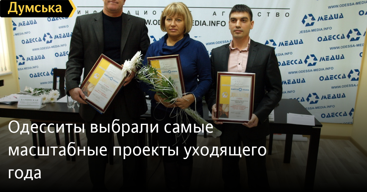 Одесситы определили самый масштабный проект 2011 года. По данным ИА «Одесса-медиа», целью мероприятия стало определение наиболее значимых экономических, культурных, социальных проектов, которые были реализованы в нынешнем году. Как подчеркнула директор информагентства Ирина Каминская, это первый традиционный новогодний рейтинг, который подводит итоги уходящего года.