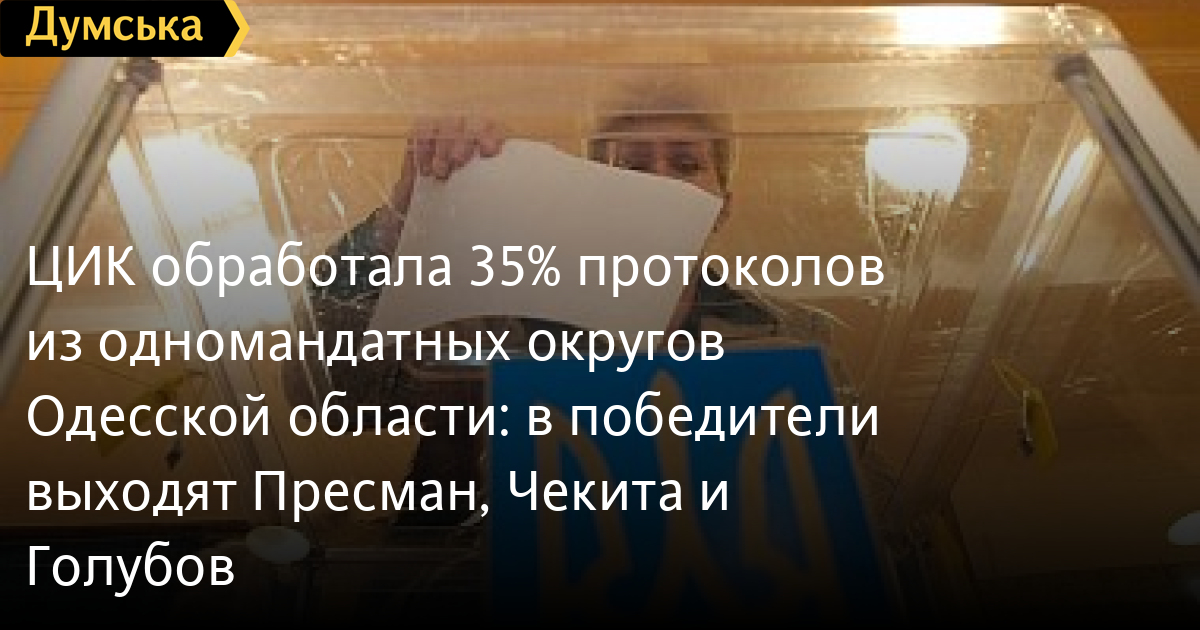 На данный момент Центральная избирательная комиссия обработала 34,93% протоколов с результатами выборов по одномандатным округам Одесской области.