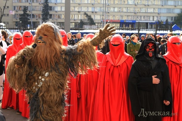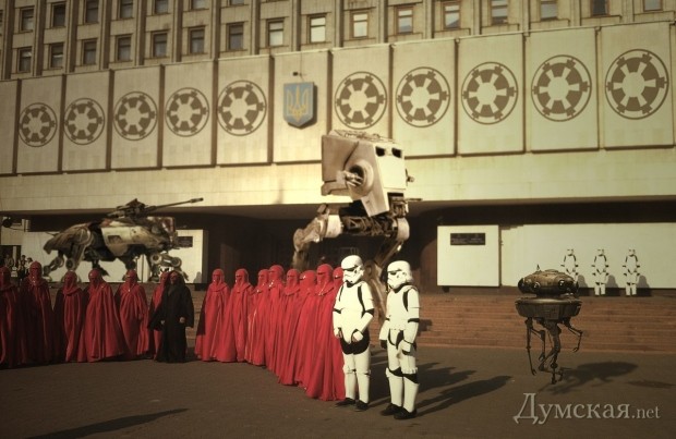 Напомним, Дарт Вейдер (это его настоящее имя, по паспорту) является первым заместителем главы Интернет партии Украины. Он получил широкую известность в Украине благодаря акциям, в которых участвовал вместе со своими сторонниками. В частности, это были акции против незаконной парковки и магазинов, торгующих курительными смесями. Кроме того, в 2012 году, в преддверии ожидаемого конца света, Дарт Вейдер раздавал киевлянам соль, спички, мыло, презервативы, лампочки и эвакуационные талоны на «Звезду смерти».