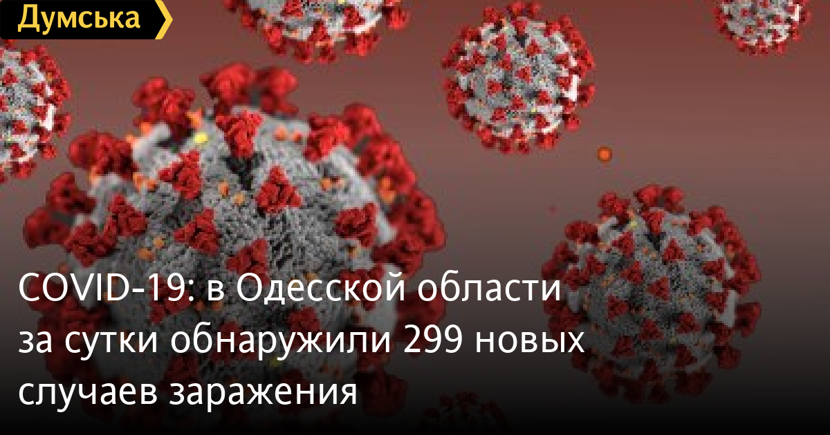 299 новых случаев заражения COVID-19 подтвердились за минувшие сутки в Одесской области, по данным лабораторного центра МОЗ. Треть заболевших проживают в Одессе.