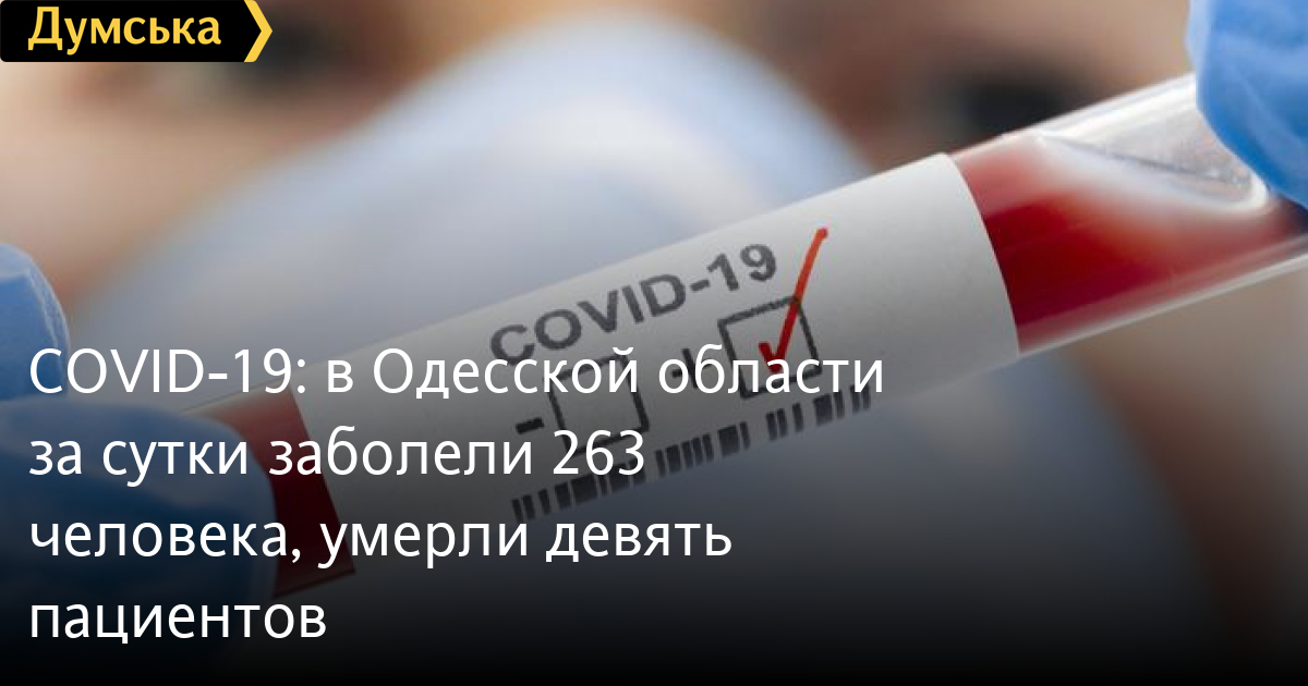 COVID-19: в Одесской области за сутки заболели 263 человека, умерли девять пациентов263 жителя Одесской области 24 декабря получили подтверждение диагноза COVID-19. С начала пандемии ковидом заболели 238225 жителей региона. В Минздраве сообщили, что вчера от осложнений инфекции скончались девять заболевших (5510). 1160 человек выздоровели за сутки (222933), ковидные больницы в регионе загружены на 21,9% (827 мест из 3775). Первую дозу вакцины вчера получили 2295 человек (777825), вторую – 3991 (734380), бустерную дозу – 26 (72). СМЕРТЬ РОССИЙСКИМ ОККУПАНТАМ! Заметили ошибку? Выделяйте слова с ошибкой и нажимайте control-enter |