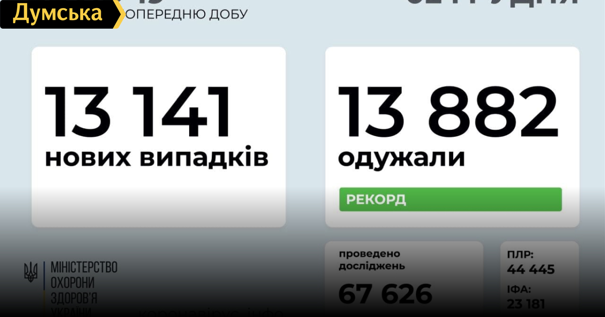 COVID-19 в Украине: 13141 новый случай и рекордное количество выздоровевших